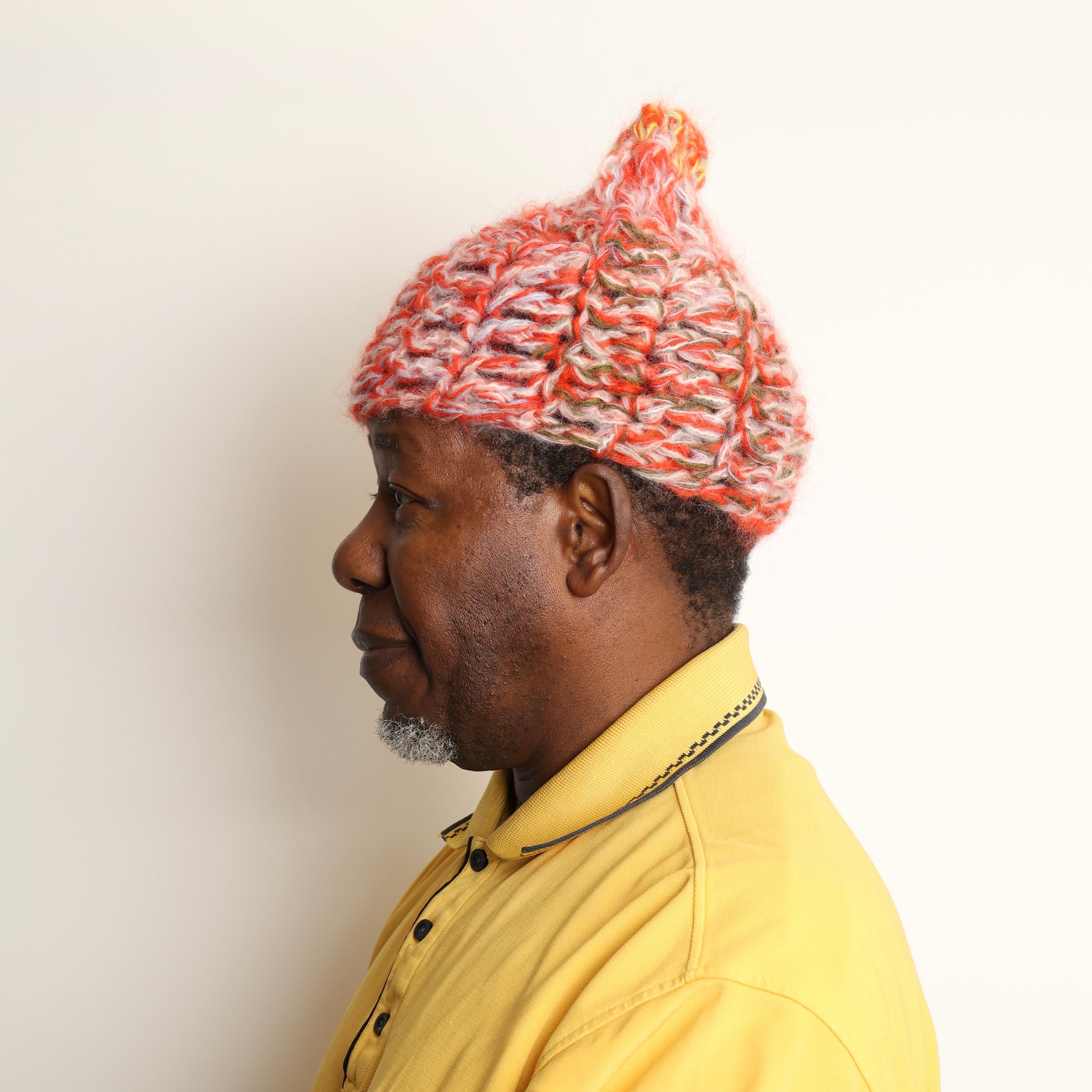 A hand-knitted beanie made from a luxurious blend of Japanese mohair and tweed mohair yarns.