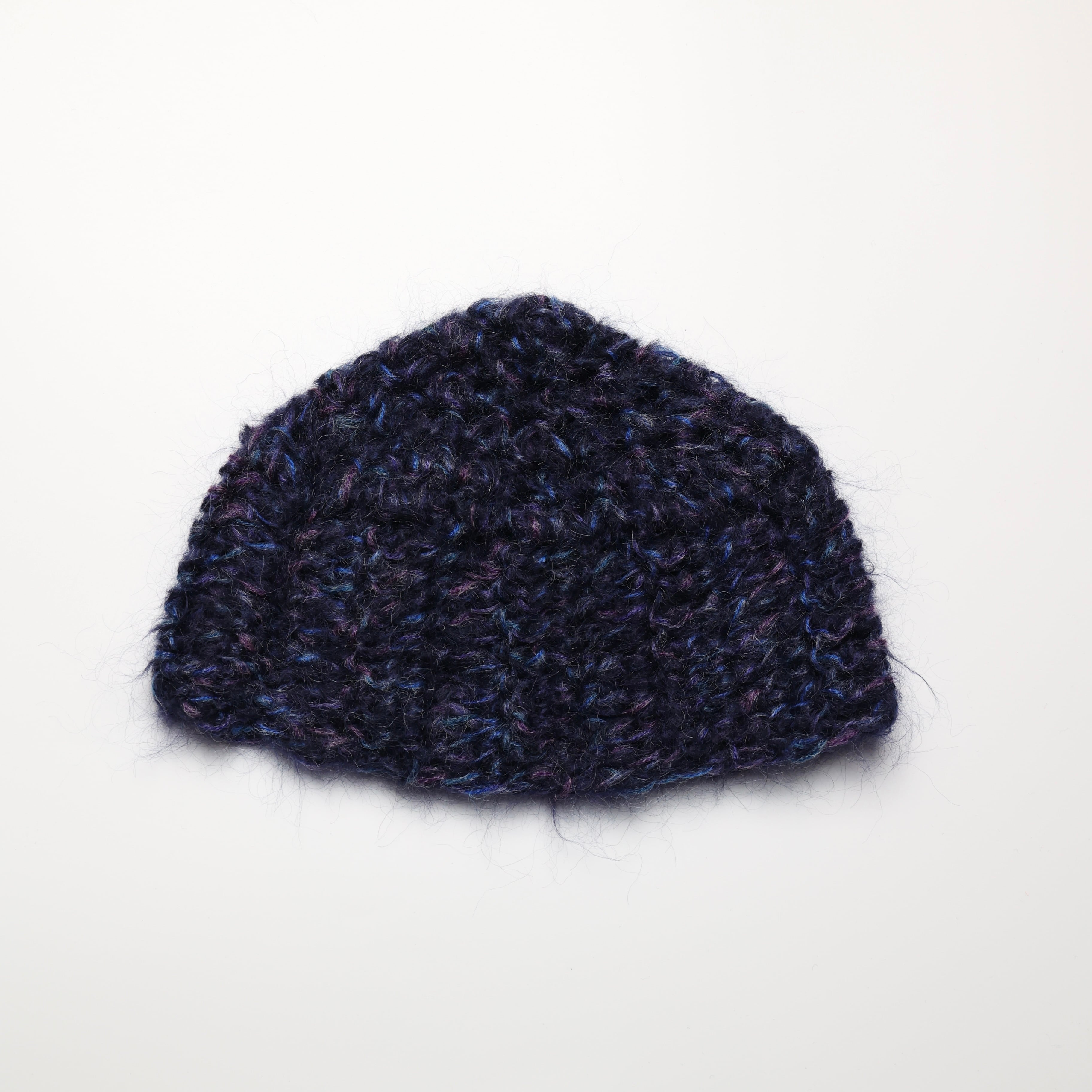 モヘア100%毛糸を使用した、贅沢なニット帽。軽さと柔らかさ、そして奥行きのある表情が魅力です。素材そのものの美しさを楽しめる一枚。
