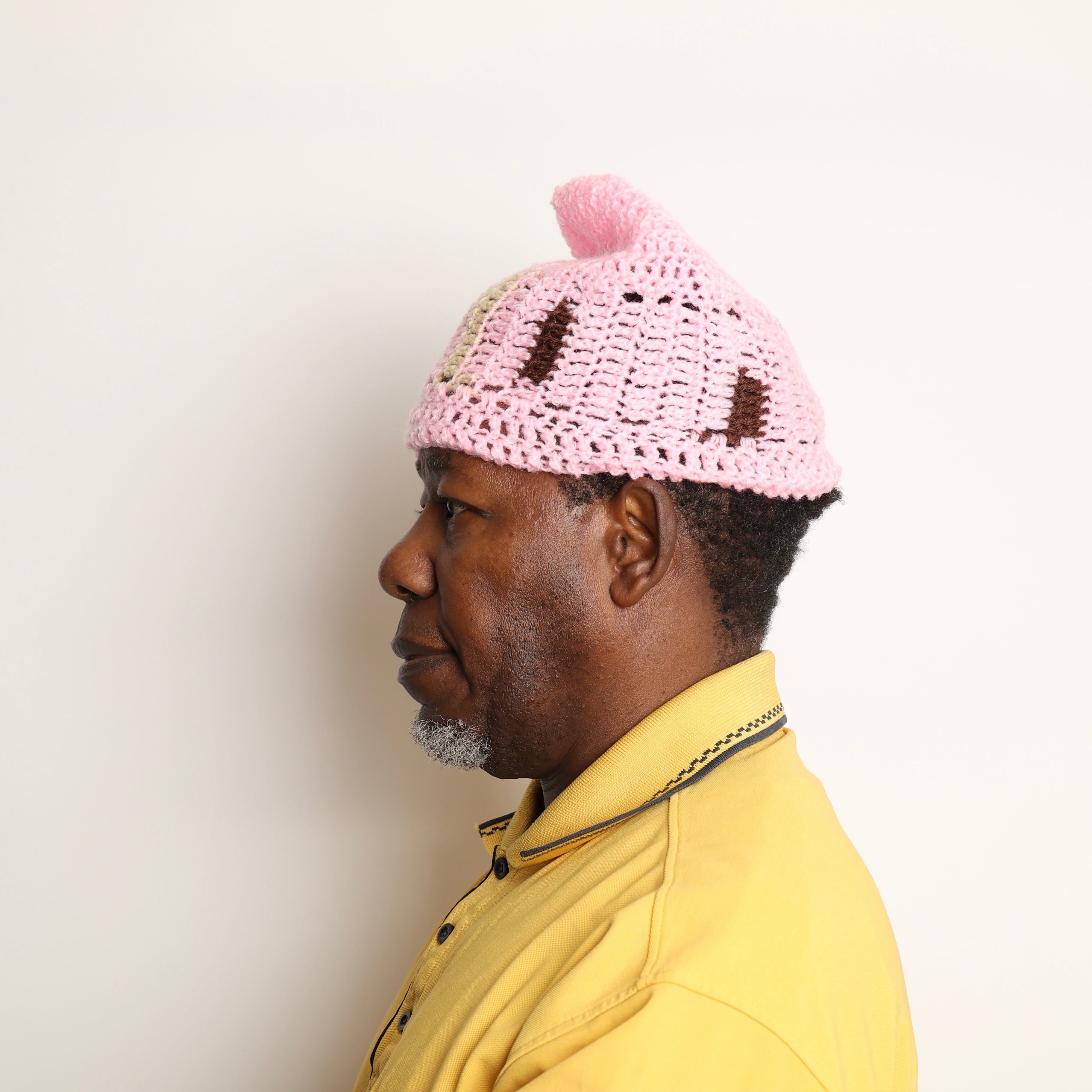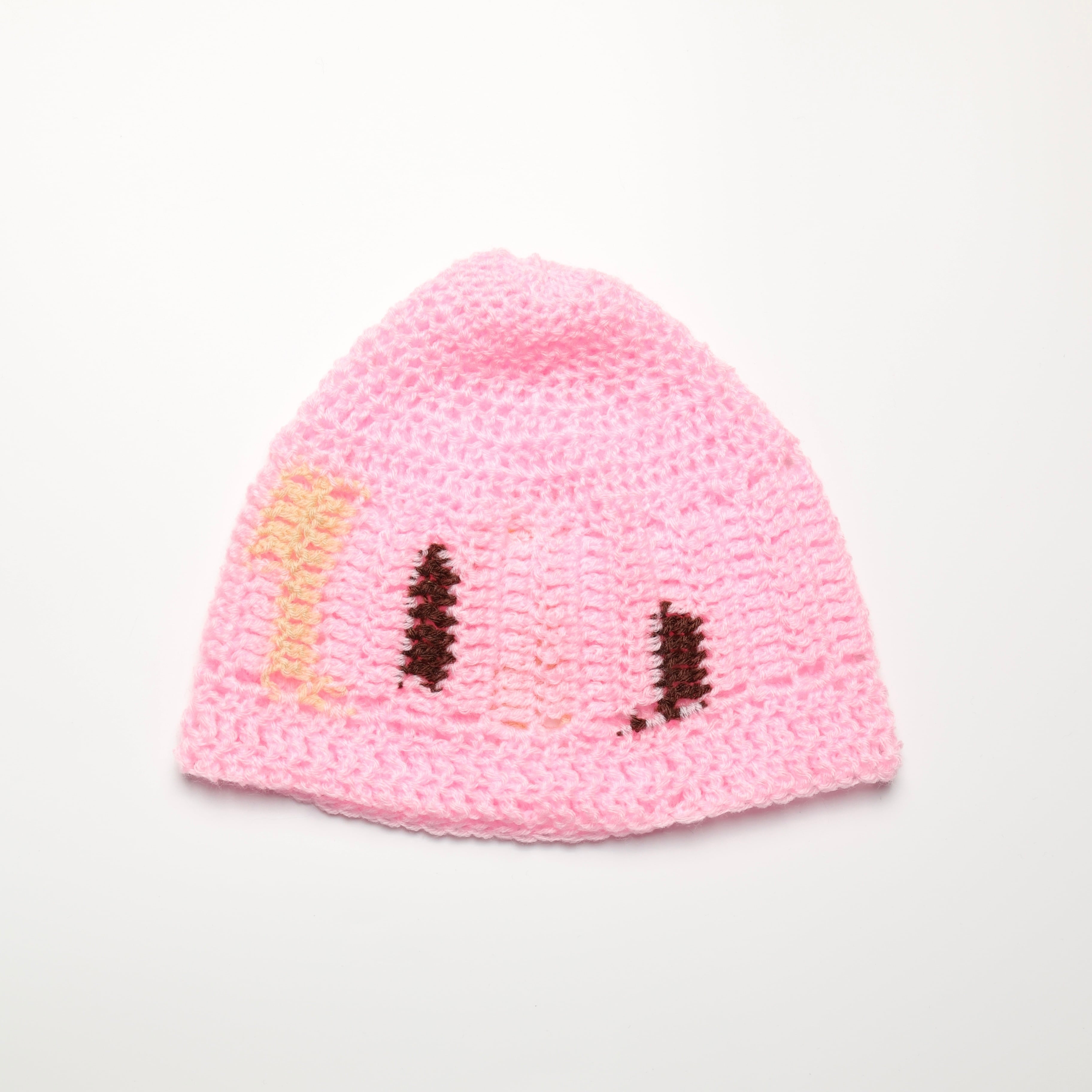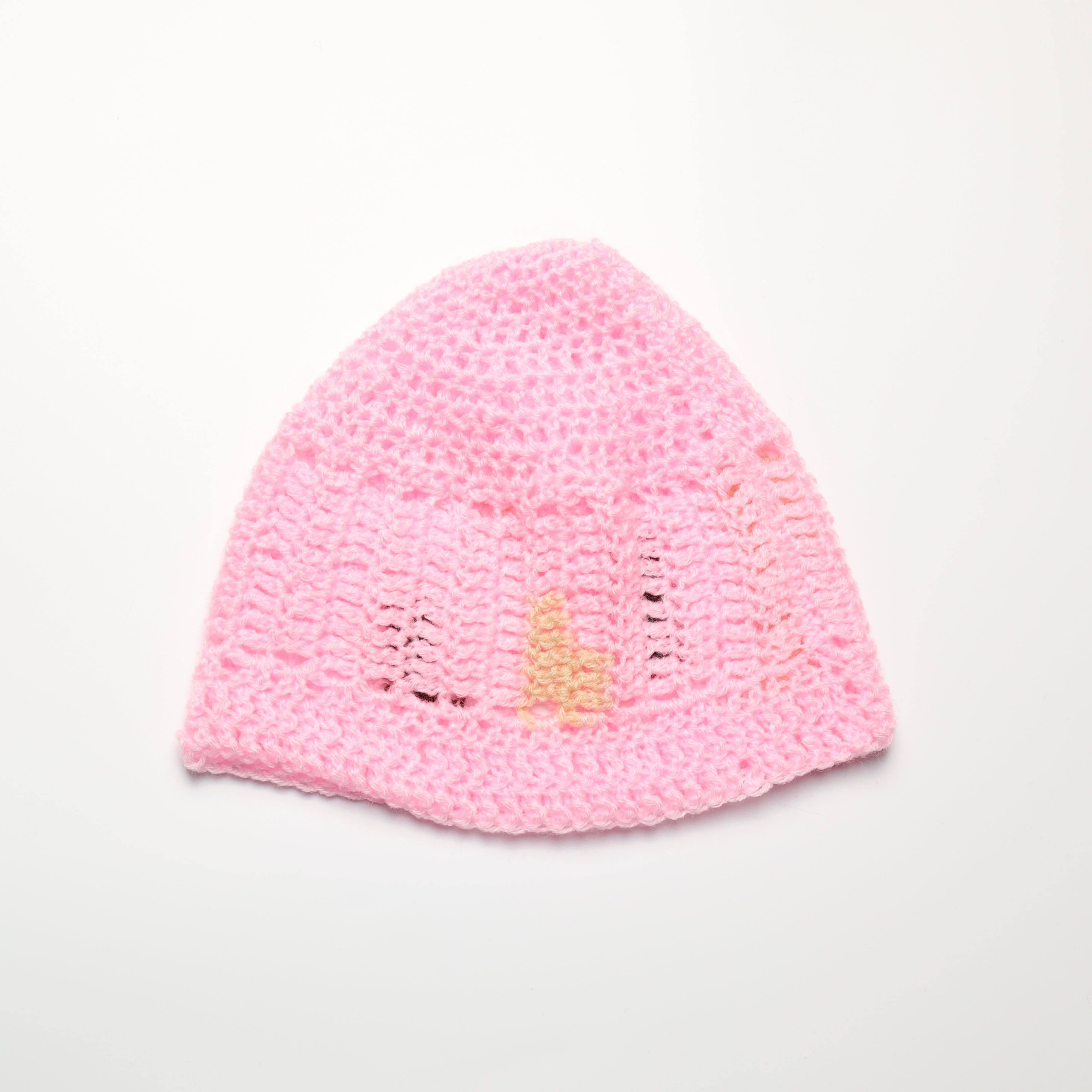 A beanie made from 100% acrylic yarn.