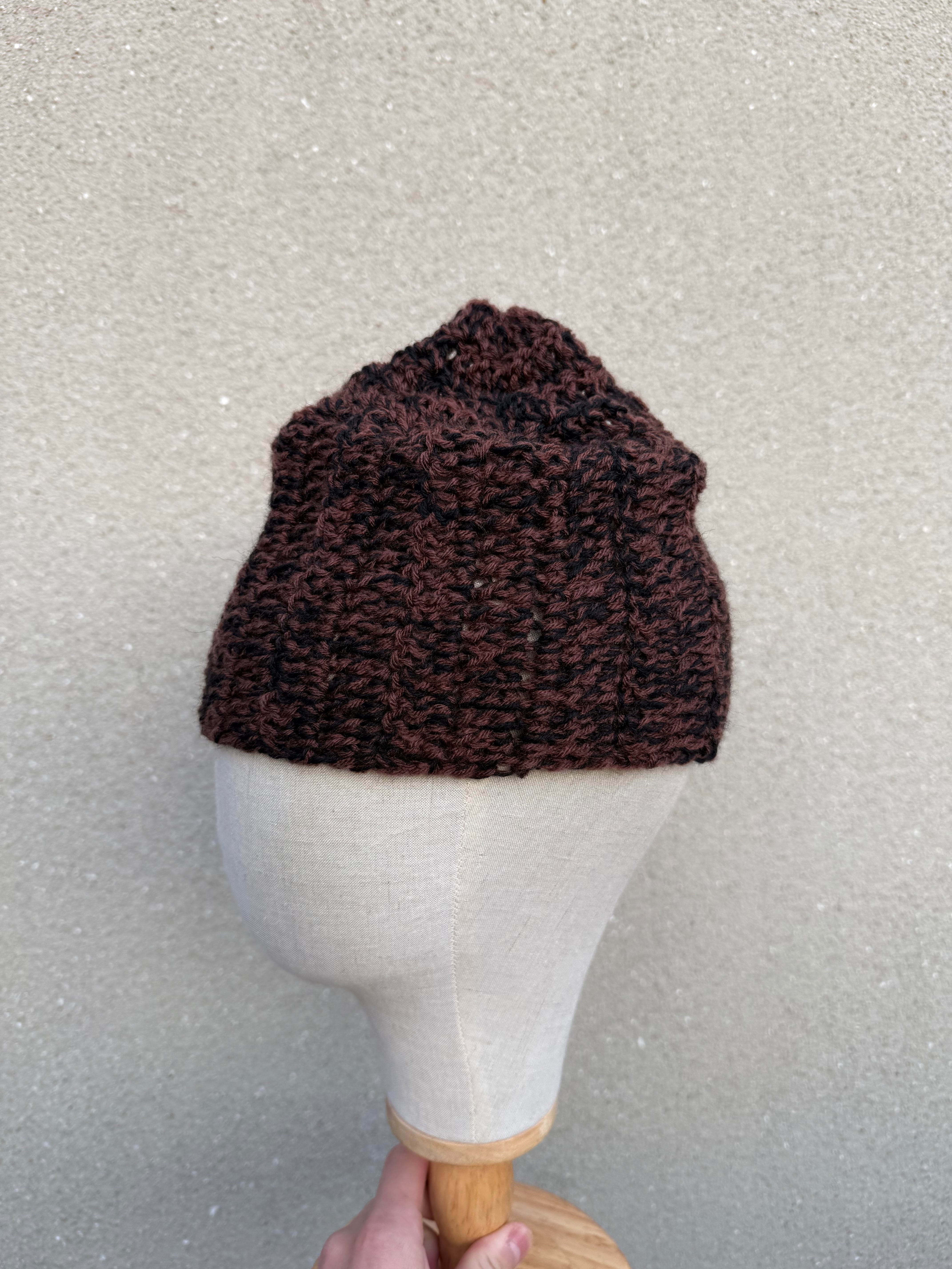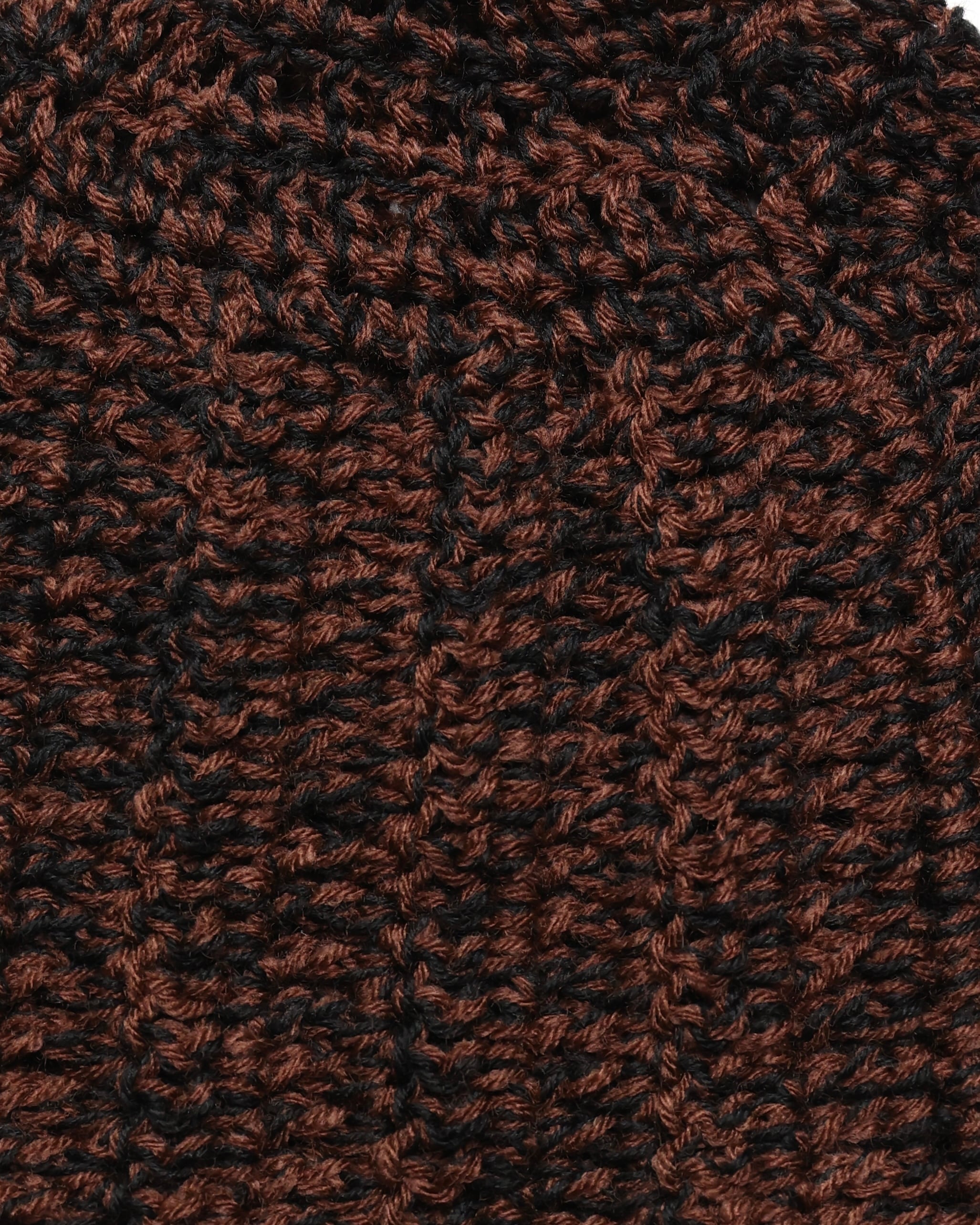 A unique knit in a striking blend of black and brown.
