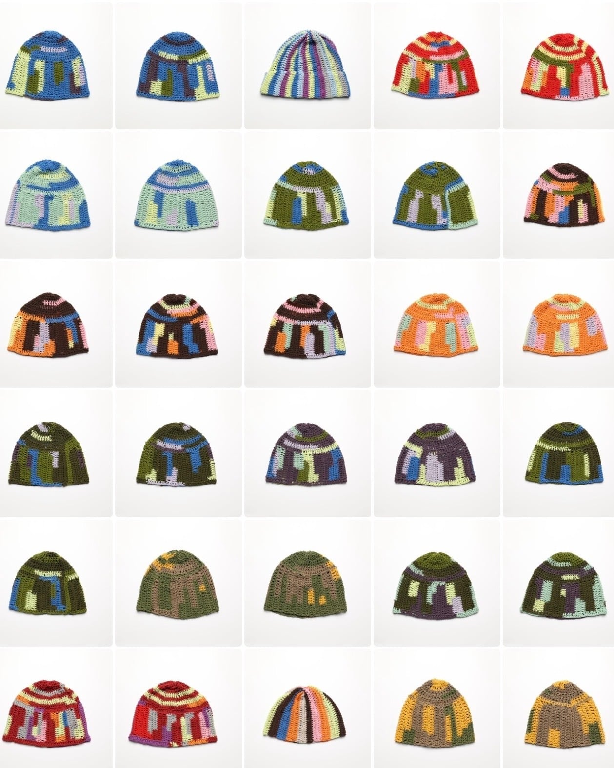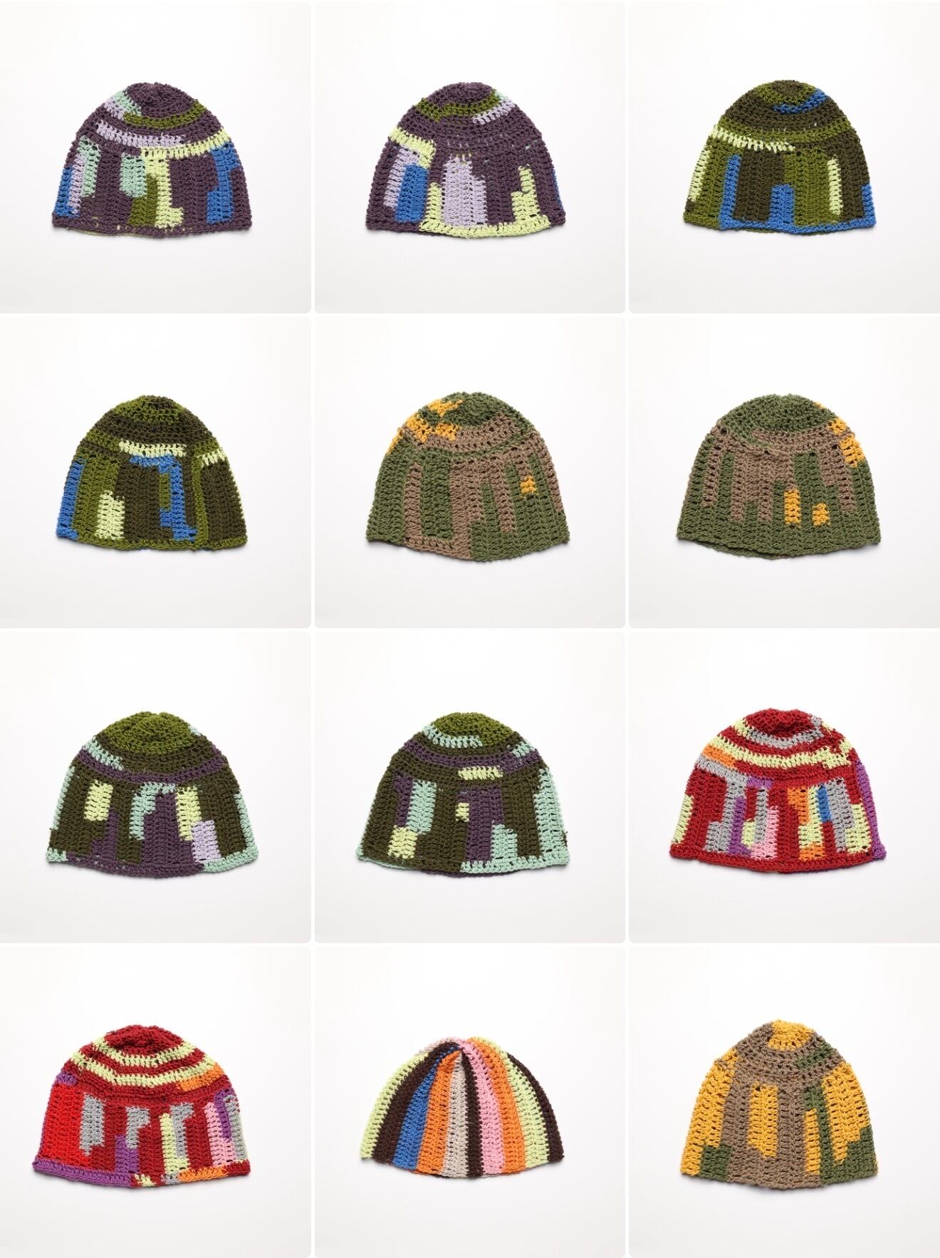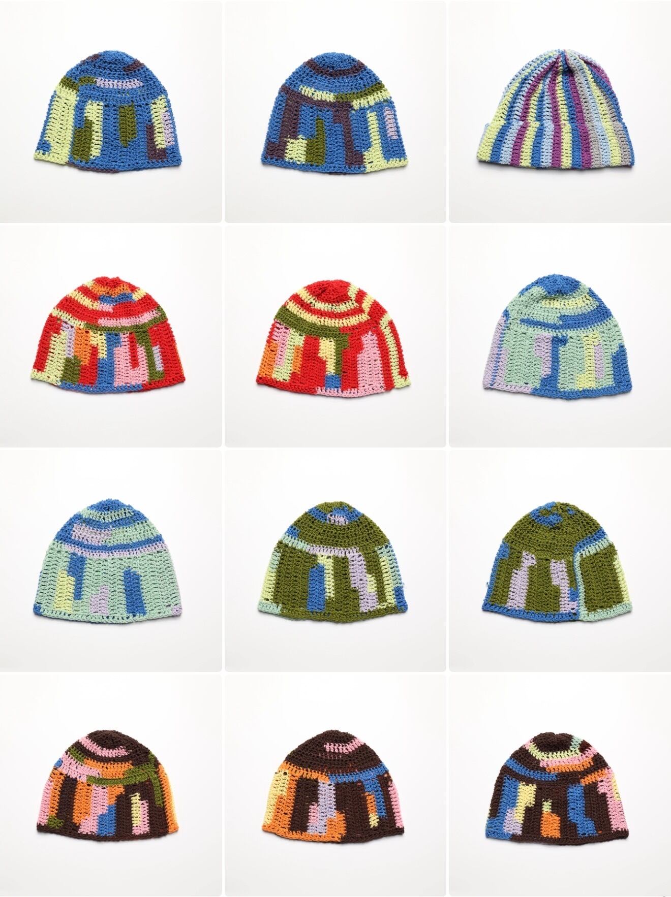 ランダムに構成された色と編みの表情。同じものは二度と作れません。100%コットンで、軽くて通気性が良く、オールシーズン着用可能。柔らかく頭に馴染むフィット感。