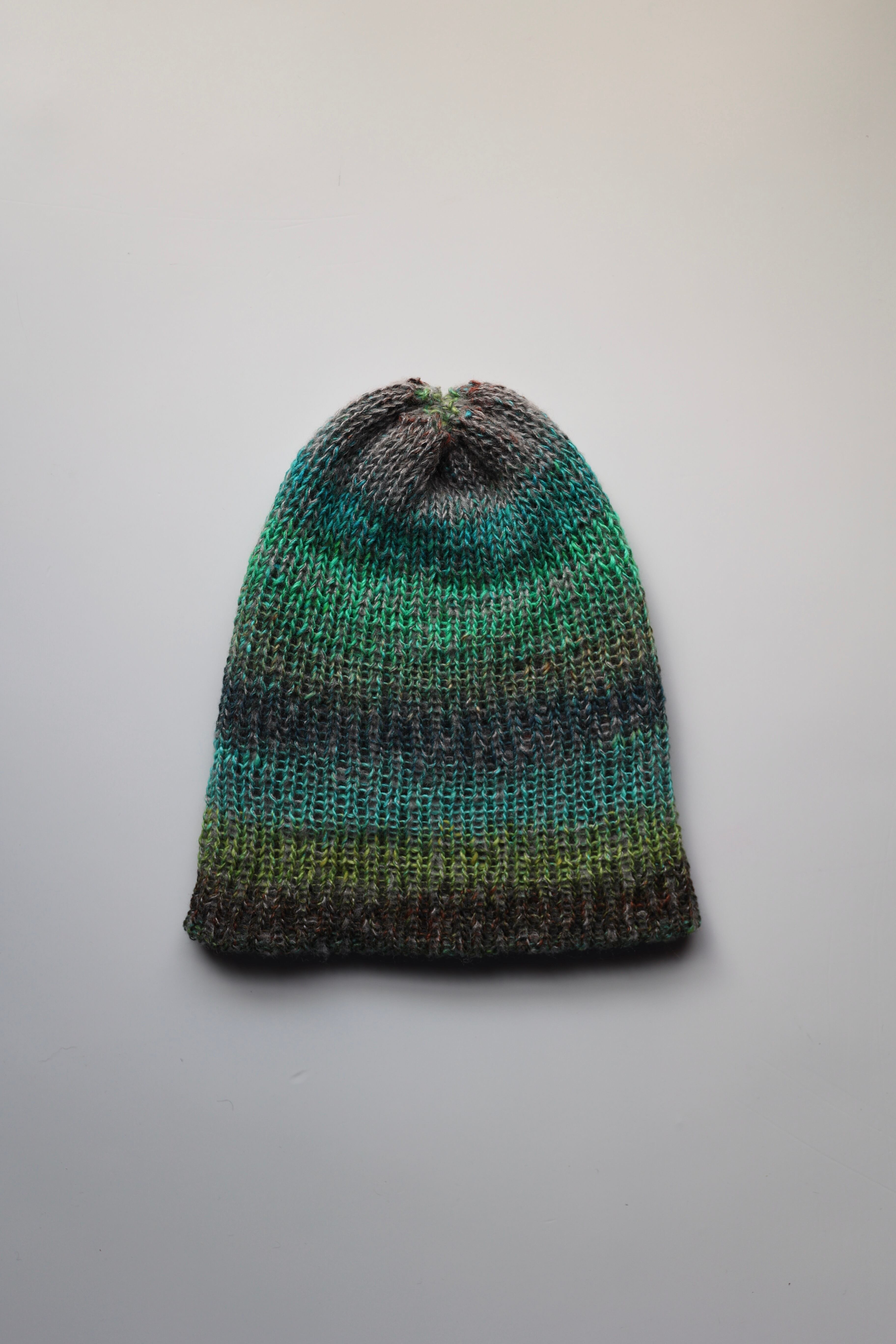 緑色がメインのリバーシブルニット帽。被り心地かなり良いです。一点のみの販売です。気になった方はお早めに!